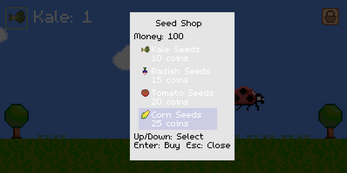 - Buy seeds from the shop with money earned from harvesting